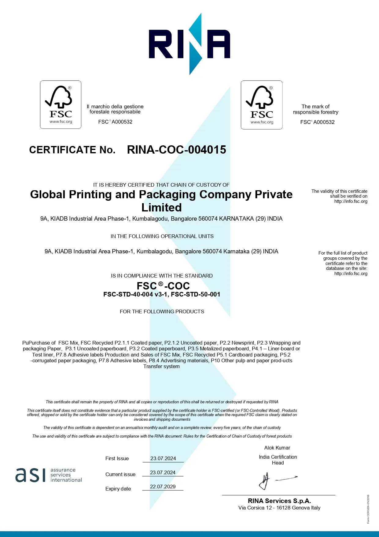 lobal Printing and Packaging Co Pvt Ltd, is amongst the highly reputed firms in Bangalore, India, catering mostly to multinational companies. Our company was established in the year 1998. Today, we are one of the most preferred manufacturers, exporters and importers for many industries. Our clientele are spread across different industries like Pharma, Telecom, Food, Cosmetics. Pharma covers around 70% of our business. Most of our clients are exporters and naturally our products meet international standards. We are ISO 9001certified since 2007. With our stringent quality control methods we have been able to satisfy the demands of our esteemed customers who treat us as their Partners in progress.